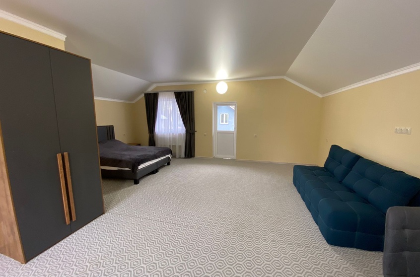 На 1 этаже могут расположиться 4 человека. предусмотренно дополнительное место за 1 000 ₽. На втором этаже могут разместиться 2 человека. В дополнительные услуги входят wi-fi, телевидение, бесплатная стоянка, бесплатный завтрак, мангал с навесом и бассейн